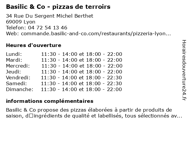 | Lundi | 11:30-14:00 et 18:00-22:00 |