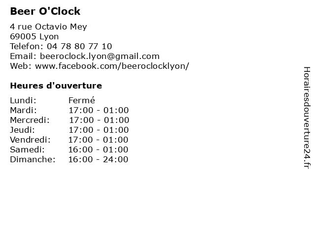 | Samedi | 16:00-01:00 |