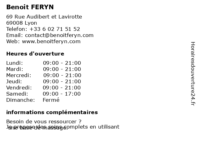 1 Résidence sociale LYON BENOIT BERNARD - Adoma (Distance: 0,54 km) 5 Rue Benoît Bernard, 69008 Lyon adoma, benoit, bernard, lyon, résidence, sociale 2 Dr Benoit Tudrej - Médecin généraliste (Distance: 1,87 km) 99 Avenue Jean Mermoz, 69008 Lyon benoit, docteur, dr, generaliste, généraliste, medical, médecin, soin, tudrej 3 Dr Benoit Ben Said - Dermatologue et vénérologue (Distance: 1,99 km) 5 Place d'Arsonval, 69003 Lyon ben, benoit, consultation, dermatologue, docteur, dr, et, med, médecin, médecine, said, traitement, vénérologue 4 Maître Laetitia Benoit - Avocate (Distance: 3,41 km) 30 Rue de la République, 69002 Lyon avocat, avocate, benoit, droit, laetitia, maître, négociation 5 Dr Benoit Garnier - Chirurgien plasticien et esthétique (Distance: 3,63 km) 14 Place Jules Ferry, 69006 Lyon benoit, chirurgien, dr, esthétique, et, garnier, plasticien 6 Dr Benoit Reynaud - Anesthésiste (Distance: 4,03 km) 155 boulevard Stalingrad, 69006 Lyon anesthésiste, benoit, consultation, docteur, dr, med, medecine, medical, médecin, reynaud, traitement |
