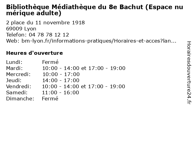 | Mardi | 10:00-14:00 et 17:00-19:00 |