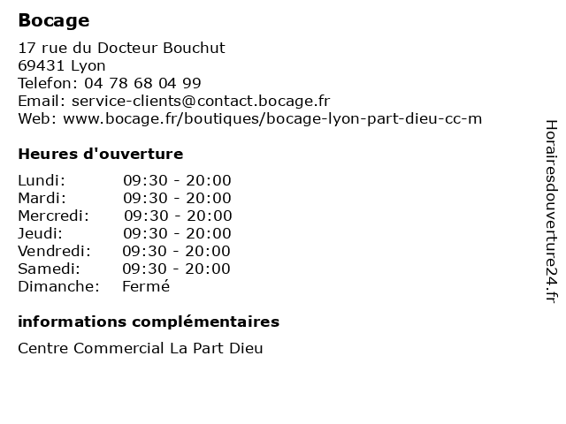 1 Bocage (Distance: 1,65 km) 54 Rue de la République, 69002 Lyon bocage, boutique, chaussures, femme, homme, maroquinerie 2 Bocage (Distance: 1,98 km) 1 Rue Victor Hugo, 69002 Lyon bocage, boutique, chaussures, femme, homme, maroquinerie 3 Bocage (Distance: 7,31 km) . Boulevard André Boulloche, 69800 Lyon bocage, boutique, chaussures, femme, homme, maroquinerie 4 Bocage (Distance: 10,47 km) - Avenue Charles de Gaulle, 69230 Saint-Genis-Laval bocage, boutique, chaussures, femme, homme, maroquinerie 5 Mercedes Bocage - Service commercial (Distance: 8,10 km) 55 rue Hélène Boucher, 69140 Rillieux La Pape accessoires, automobile, bocage, carrosserie, commercial, entretien, garage, mercedes, pièces, réparation, service, vente, vidange 6 Mercedes Bocage - Service après-vente (Distance: 8,10 km) 55 rue Hélène Boucher, 69140 Rillieux La Pape accessoires, après, automobile, bocage, carrosserie, entretien, garage, mercedes, pièces, réparation, service, vente, vidange |