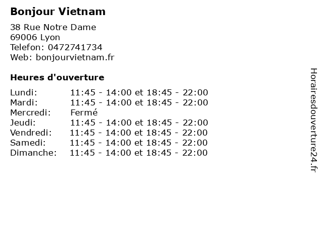 | Mardi | 11:45-14:00 et 18:45-22:00 |