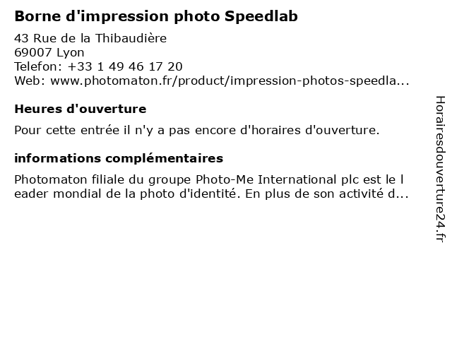 1 Borne d'impression photo Speedlab (Distance: 1,50 km) Rue Docteur Bouchut, 69001 Lyon borne, d'impression, photo, speedlab 2 Borne d'impression photo Speedlab (Distance: 1,60 km) Place Charles Béraudier, 69003 Lyon borne, d'impression, photo, speedlab 3 Borne d'impression photo Speedlab (Distance: 3,56 km) 37 Rue Jacques-Louis Hénon, 69004 Lyon borne, d'impression, photo, speedlab 4 Borne d'impression photo Speedlab (Distance: 4,79 km) 90 Grande Rue, 69600 Oullins borne, d'impression, photo, speedlab 5 Borne d'impression photo Speedlab (Distance: 5,26 km) 1 Place Maréchal Foch, 69300 Caluire-et-Cuire borne, d'impression, photo, speedlab 6 Borne d'impression photo Speedlab (Distance: 5,40 km) Avenue Charles de Gaulle, 69160 Tassin-la-Demi-Lune borne, d'impression, photo, speedlab |