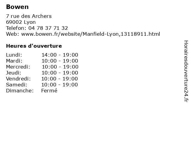 | Vendredi | 10:00-19:00 |