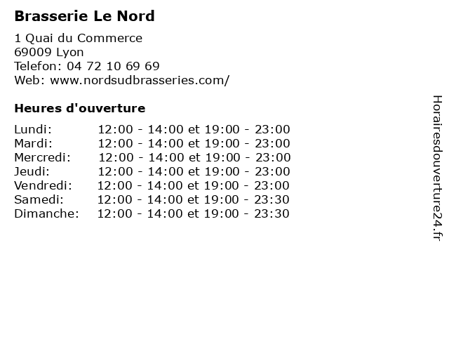 | Samedi | 12:00-14:00 et 19:00-23:30 |