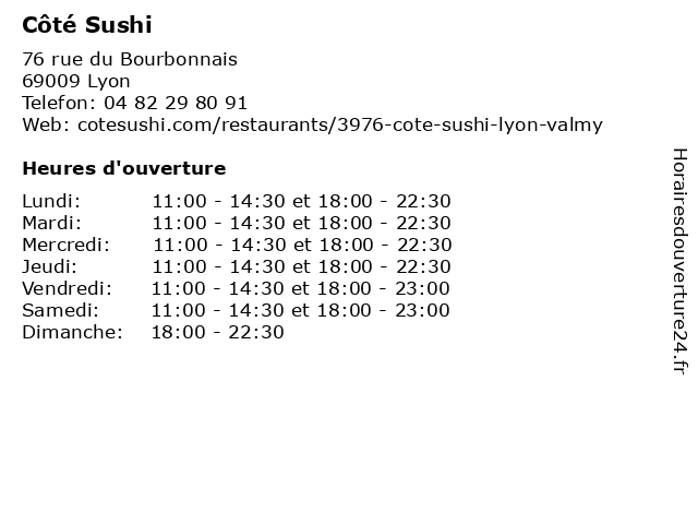 | Lundi | 11:00-14:30 et 18:00-22:30 |