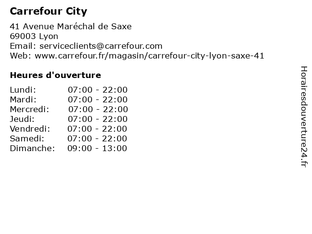 2 Carrefour City (Distance: 1,26 km) 9-11 Avenue Jean Jaurès, 69007 Lyon alimentation, carrefour, city, magasin discount, market, supermarché 3 Carrefour City (Distance: 1,37 km) 32-34 Rue de Marseille, 69002 Lyon carrefour, city, hypermarché, nourriture, supermarché 4 Carrefour City (Distance: 1,53 km) 13 Rue Bellecombe, 69100 Villeurbanne carrefour, city, hypermarché, nourriture, supermarché 5 Carrefour City (Distance: 1,90 km) 24 Rue Renan, 69007 Lyon carrefour, city, hypermarché, nourriture, supermarché 6 Carrefour City (Distance: 1,99 km) 2 Rue Janin, 69004 Lyon alimentation, carrefour, city, market, supermarché, épicerie |