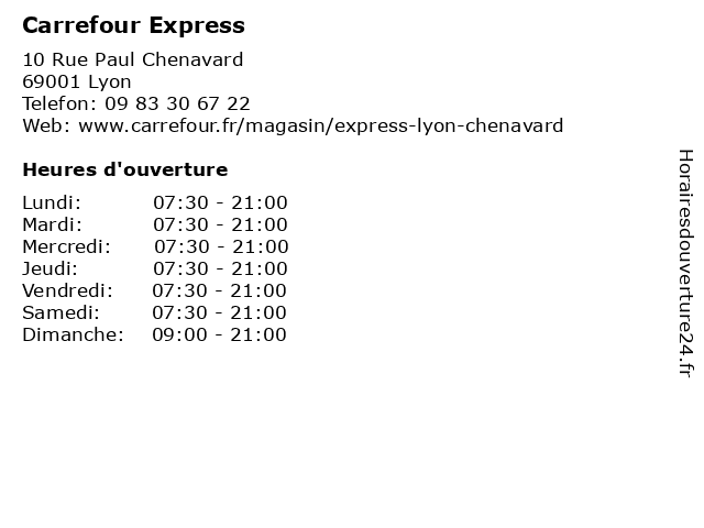 1 Carrefour Express (Distance: 0,93 km) 65 Avenue maréchal Foch, 69006 Lyon alimentation, carrefour, express, market, supermarché, épicerie 2 Carrefour Express (Distance: 1,70 km) 48 Cours Vitton, 69006 Lyon carrefour, express, hypermarché, nourriture, supermarché 3 Carrefour Express (Distance: 3,14 km) 111 Rue Marietton, 69004 Lyon alimentation, carrefour, express, magasin discount, market, supermarché 4 Carrefour Express (Distance: 5,59 km) 53 Avenue de la République, 69370 Saint-Didier-au-Mont-d'Or carrefour, express, hypermarché, nourriture, supermarché 5 Carrefour Express (Distance: 6,53 km) 46 Avenue des Maronniers, 69270 Fontaines-Sur-Saône alimentaire, alimentation, carrefour, courses, distributeur, express, hypermarché, supermarché, épicerie 6 Carrefour Express (Distance: 7,31 km) 70 Avenue Clémenceau, 69230 Saint-Genis-Laval alimentation, carrefour, express, magasin discount, market, supermarché |