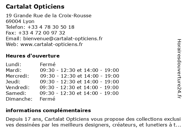 | Mercredi | 09:30-12:30 et 14:00-19:00 |