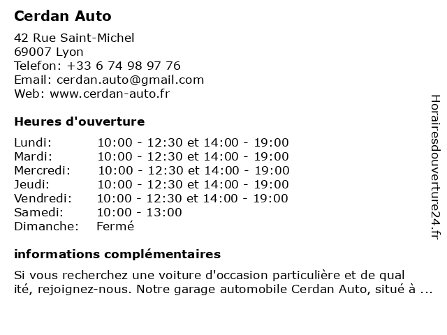 | Lundi | 10:00-12:30 et 14:00-19:00 |