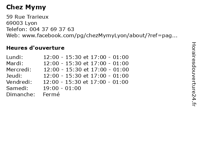 | Mardi | 12:00-15:30 et 17:00-01:00 |