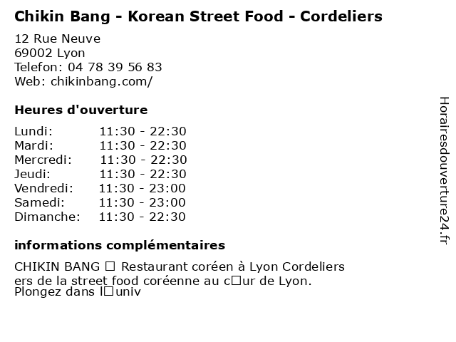 Termes de recherche pour Chikin Bang - Korean Street Food - Cordeliers:food, restaurants, street, bang, fast-food, cordeliers, korean, chikin |