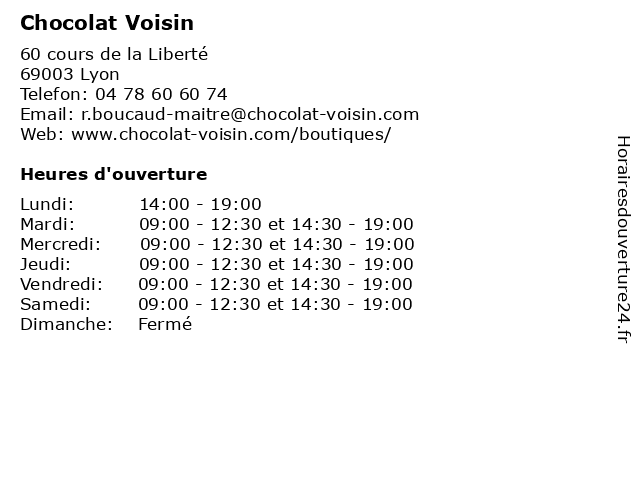 1 Chocolat Voisin (Distance: 0,71 km) - quai Jules Courmont, 69002 Lyon cafes, chocolat, chocolats, dragees, macarons, thes, voisin 2 Chocolat Voisin (Distance: 0,90 km) 17 rue du Docteur Bouchut, 69003 Lyon chocolat, confiserie, nougat, tablettes, voisin 3 Chocolat Voisin (Distance: 0,92 km) 102 cours Lafayette, 69003 Lyon cafes, chocolat, chocolats, dragees, macarons, thes, voisin 4 Chocolat Voisin (Distance: 1,27 km) 24 place des Terreaux, 69001 Lyon cafes, chocolat, chocolats, dragees, macarons, thes, voisin 5 Chocolat Voisin (Distance: 1,47 km) 10 cours Vitton, 69006 Lyon cafes, chocolat, chocolats, dragees, macarons, thes, voisin 6 Chocolat Voisin (Distance: 1,90 km) 3e niveau, 69003 Lyon cafes, chocolat, chocolats, dragees, macarons, thes, voisin  |