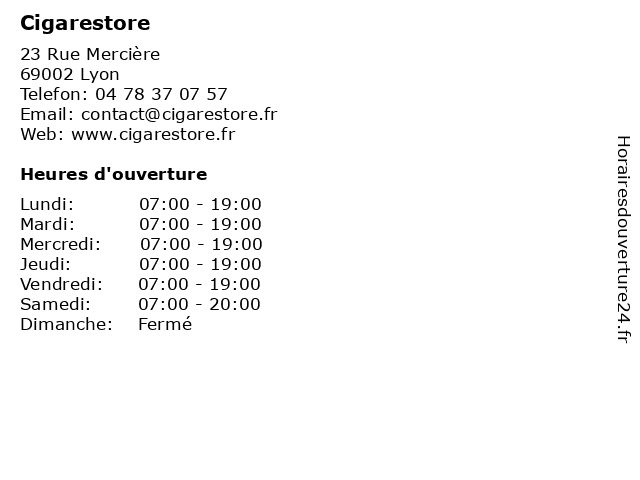 | Lundi | 07:00-19:00 |