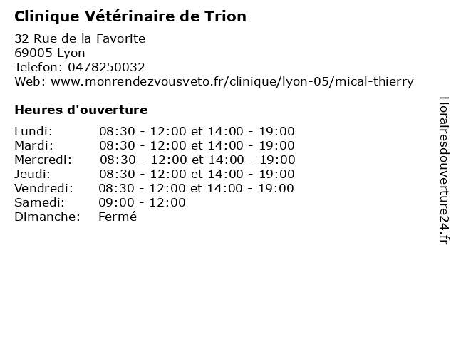 | Lundi | 08:30-12:00 et 14:00-19:00 |