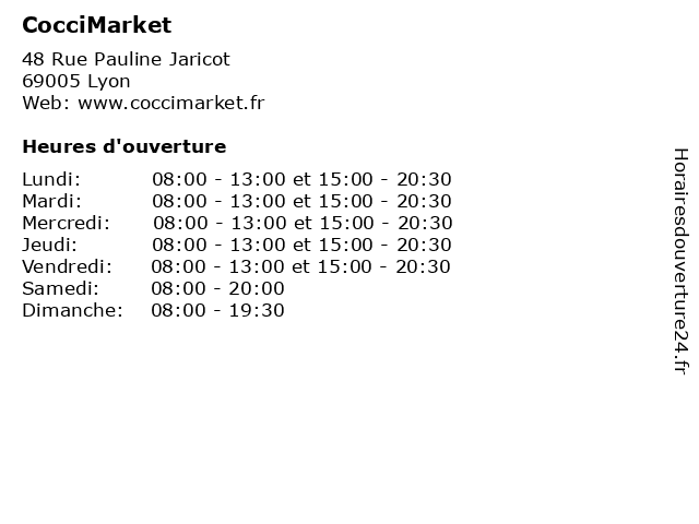 Jeudi | 08:00-13:00 et 15:00-20:30 |