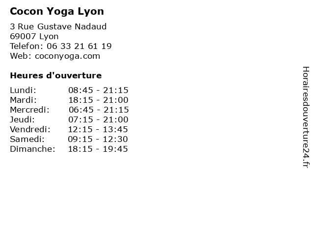 1 Yoga Citta (Distance: 1,92 km) 204 Rue de Créqui, 69003 Lyon citta, lyon, méditation, relax, spa, yoga 3 Ecole Yoga Horizon (Distance: 2,74 km) 99 Montée de la Grande-Côte, 69001 Lyon bien-être, de, ecole, horizon, lyon, mental, musique, physique, santé, yoga 4 Yoga Life West Indies (Distance: 2,78 km) 3 rue Griffon, 69001 Lyon indies, life, lyon, méditation, relax, spa, west, yoga 6 Piika Yoga (Distance: 3,07 km) 35 rue Tronchet, 69006 Lyon méditation, piika, reiki, relax, spa, vinyasa, yoga |