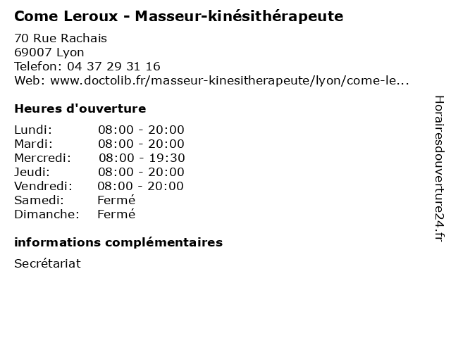 | Lundi | 08:00-20:00 |