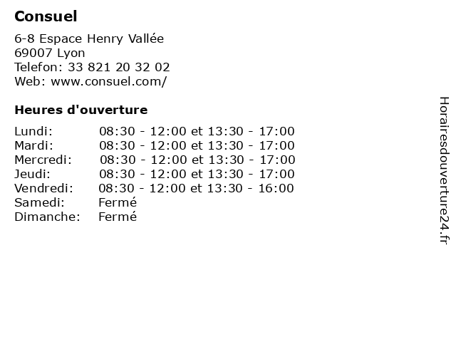 | Lundi | 08:30-12:00 et 13:30-17:00 |