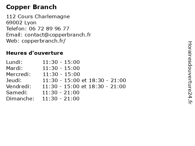 | Vendredi | 11:30-15:00 et 18:30-21:00 |