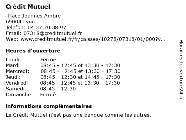 1 Crédit Mutuel (Distance: 0,04 km) - Place Joannes Ambre, 69004 Lyon agence, assurance, bancaire, banque, crédit, mutuel 2 Crédit Mutuel (Distance: 1,35 km) 18 Rue Duquesne, 69006 Lyon agence, assurance, bancaire, banque, crédit, mutuel 3 Crédit Mutuel (Distance: 1,66 km) 143 BOULEVARD DE LA CROIX ROUSSE, 69004 LYON crédit, l'argent, l'épargne, le crédit, les banques, les prêts, mutuel 4 Crédit Mutuel (Distance: 1,69 km) 18 Place Maréchal Lyautey, 69006 Lyon agence, assurance, bancaire, banque, crédit, mutuel 5 Crédit Mutuel (Distance: 1,77 km) 31 Rue Garibaldi, 69006 Lyon agence, assurance, bancaire, banque, crédit, mutuel 6 Crédit Mutuel (Distance: 1,80 km) 8 Rue Rhin et Danube, 69337 Lyon agence, assurance, bancaire, banque, crédit, mutuel |