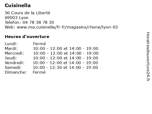 | Samedi | 10:00-12:30 et 14:00-19:00 |