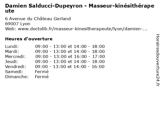 | Lundi | 09:00-13:00 et 14:00-18:00 |