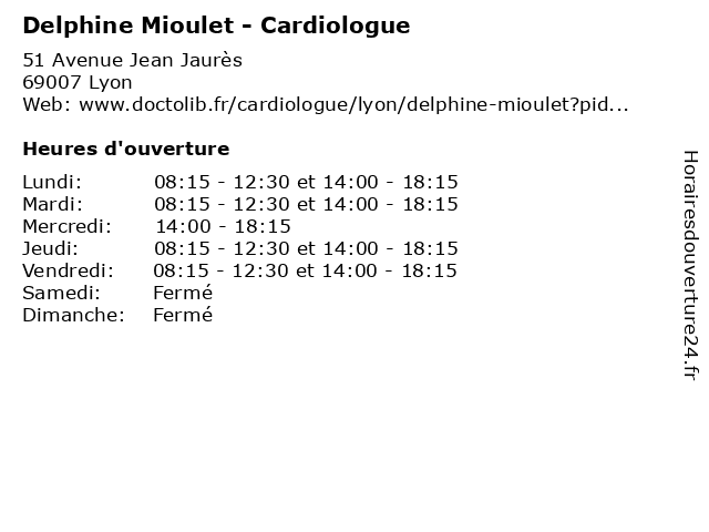 | Lundi | 08:15-12:30 et 14:00-18:15 |