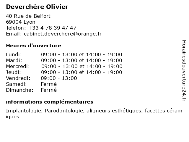 | Lundi | 09:00-13:00 et 14:00-19:00 |