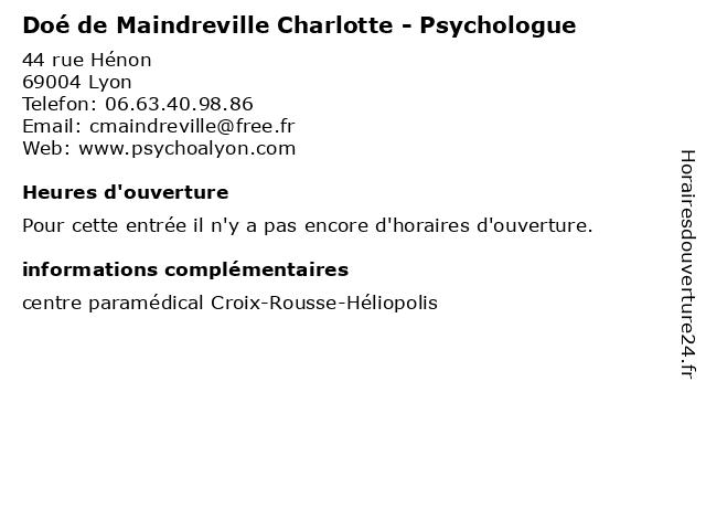 | Appeler Doé de Maindreville Charlotte - Psychologue | |