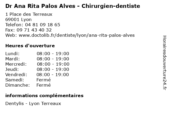 | Lundi | 08:00-19:00 |