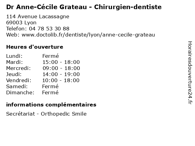 | Lundi | Fermé |