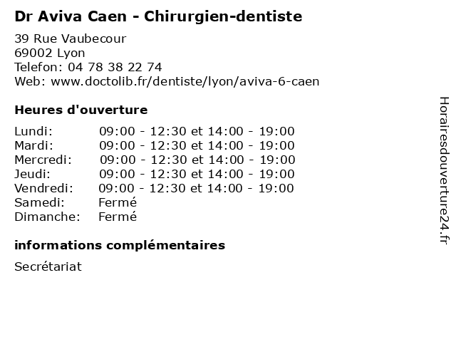1 Dr Aviva Caen - Chirurgien-dentiste (Distance: 0,39 km) 39 Rue Vaubecour, 69002 Lyon aviva, caen, chirurgien, consultation, dentiste, docteur, dr, med, secrétariat 2 Aviva Assurance (Distance: 3,64 km) 62 Grande Rue, 69600 Oullins assurance, assurances, aviva, banques, services 3 Cuisines AvivA (Distance: 5,76 km) 60 Rue Emile Decorps, 69100 Villeurbanne aviva, cuisines, cuisiniste, magasin, projets, siege social 4 Cuisines AvivA (Distance: 7,15 km) 199 Route Nationale 6, 69760 Limonest aménagement, aviva, cuisine, cuisines, cuisiniste, intérieur, maison, meubles, équipement 5 Dr Judith Lyon-Caen - Médecin généraliste (Distance: 8,14 km) 14 Avenue Voltaire, 69120 Vaulx-en-Velin caen, commune, docteur, dr, en, generaliste, généraliste, judith, lyon, medical, médecin, santé, soin, vaulx, velin 6 |