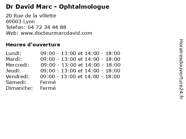 | Lundi | 09:00-13:00 et 14:00-18:00 |