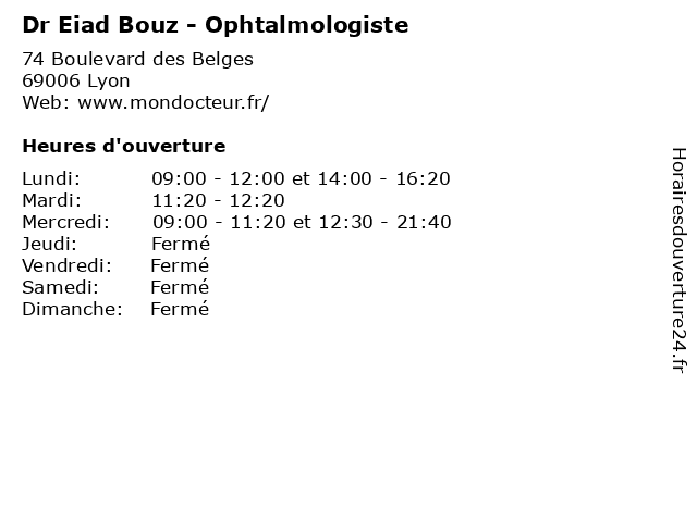 | Mercredi | 09:00-11:20 et 12:30-21:40 |
