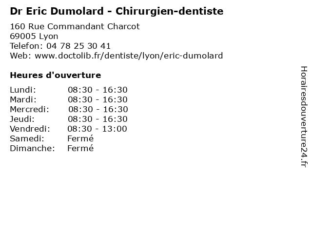 | Lundi | 08:30-16:30 |