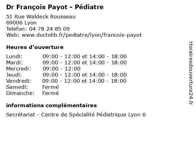 1 Dr François Payot - Pédiatre (Distance: 3,54 km) 59 Boulevard Pinel, 69677 Bron consultation, docteur, dr, francois, françois, med, médecin, médecine, payot, pédiatre, traitement 2 Dr Elodie Collinet - Pédiatre (Distance: 0,00 km) 51 Rue Waldeck Rousseau, 69006 Lyon bebe, collinet, dr, elodie, nourisson, pédiatre, pédiatrie 3 Dr Aurélie Flamans - Pédiatre (Distance: 0,00 km) 51 Rue Waldeck Rousseau, 69006 Lyon aurélie, docteur, dr, flamans, generaliste, medical, pédiatre, soin 4 Dr Mélanie Rapp - Pédiatre (Distance: 0,00 km) 51 Rue Waldeck Rousseau, 69006 Lyon dr, mélanie, pedicure, pied, podologue, pédiatre, rapp, sante 5 Pharmacie Mathey et François (Distance: 0,20 km) 179 Cours Lafayette, 69006 Lyon aromatherapie, et, françois, mathey, médical, médicaments, paramédical, parapharmacie, pharmacie, santé, traitements 6 Dr François-Xavier Gadroy - Gastro-entérologue et hépatologue (Distance: 0,75 km) 155 Boulevard de Stalingrad, 69006 Lyon dr, enterelogue, entérologue, et, françois, gadroy, gastro, hepatolgue, hépatologue, soins, xavier |