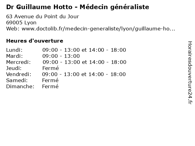 | Lundi | 09:00-13:00 et 14:00-18:00 |