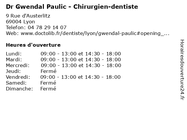 | Lundi | 09:00-13:00 et 14:30-18:00 |