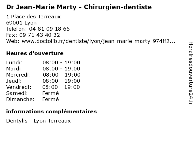 | Lundi | 08:00-19:00 |