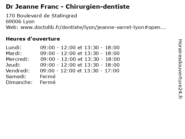 | Mercredi | 09:00-12:00 et 13:30-18:00 |