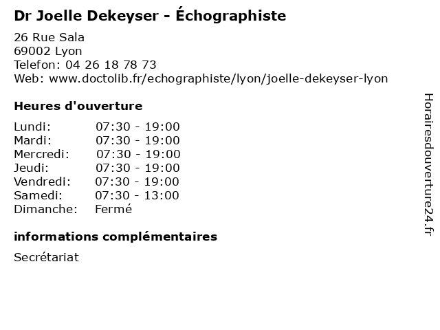 | Lundi | 07:30-19:00 |