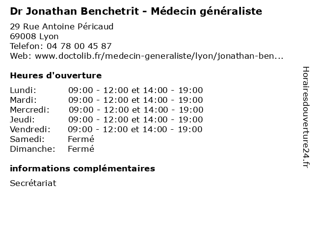 | Lundi | 09:00-12:00 et 14:00-19:00 |