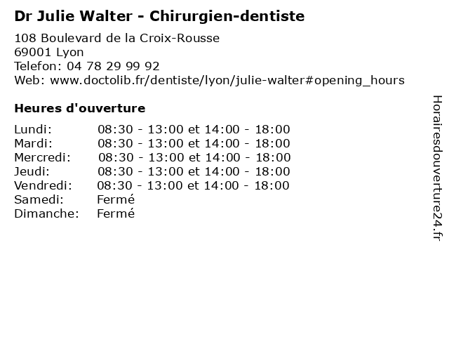 | Lundi | 08:30-13:00 et 14:00-18:00 |