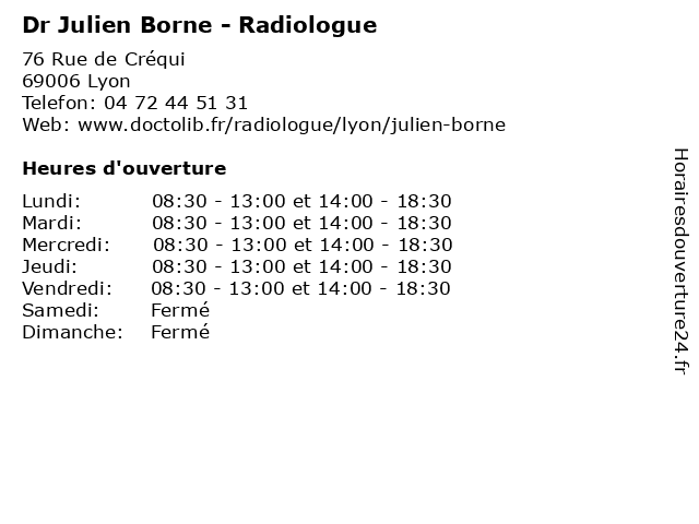 | Lundi | 08:30-13:00 et 14:00-18:30 |
