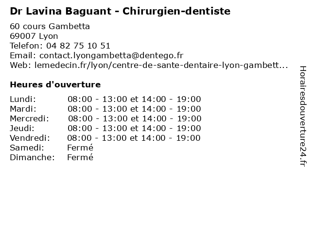 | Lundi | 08:00-13:00 et 14:00-19:00 |