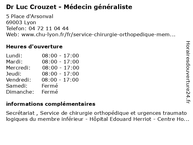 | Samedi | Fermé |