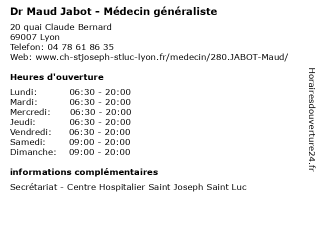 | Lundi | 06:30-20:00 |