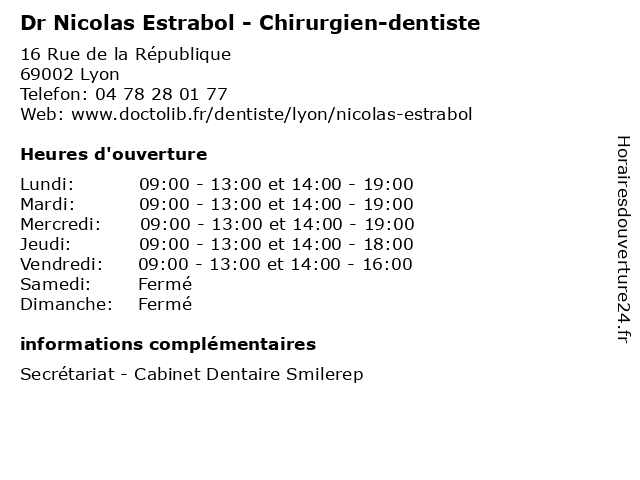 1 Dr Nicolas Estrabol - Chirurgien-dentiste (Distance: 2,42 km) 1-3 Chemin du Penthod, 69300 Caluire et Cuire chirurgien, consultation, dentiste, docteur, dr, estrabol, med, médecin, nicolas, traitement 2 Thibaut Estrabol - Ostéopathe (Distance: 0,00 km) 16 Rue de la République, 69002 Lyon estrabol, médecin, médecine, médical, ostéopathe, pharmaceutique, secretariat, thibaut, traitement 3 Thibaut Estrabol - Ostéopathe (Distance: 0,00 km) 16 Rue de la République, 69002 Lyon estrabol, médecin, médecine, médical, ostéopathe, pharmaceutique, secretariat, thibaut, traitement 4 Dr. Fayol Nicolas - Ophtalmologue (Distance: 0,04 km) 14 Avenue De Breteuil, 75007 Lyon dieu, docteur, dr., fayol, medecins, nicolas, ophta, ophtalmologue, part, sante 5 Dr. Estrabol Thibaut - Ostéopathe (Distance: 0,35 km) 4 Rue Paul Chenavard, 69001 Lyon docteur, dr., estrabol, medecins, ostéopathe, sante, thibaut 6 Nicolas Hardy - Ostéopathe (Distance: 1,41 km) 259 Rue Vendôme, 69003 Lyon care, clinic, dentist, france, gynécologue, hardy, health, kinesitherapeute, nicolas, ophtalmologiste, orl, ostéopathe, psychologue, service |