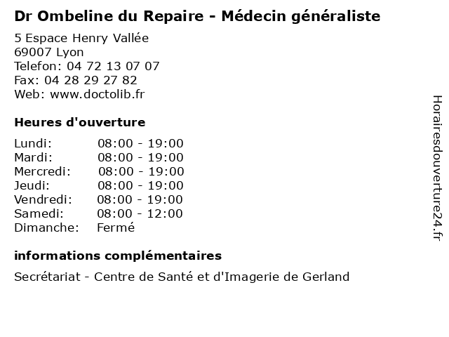 Termes de recherche pour Dr Ombeline du Repaire - Médecin généraliste:du, de, lyon, générale, santé, gerland, généraliste, repaire, dispensaire, docteur, médecin, dr, fondation, ombeline |